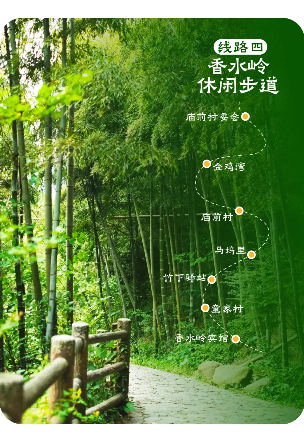 听过竹下驿站的竹涛声,看童家村铺展开田园画卷,最终抵达路线终点香水岭宾馆,伴着春风,收藏一路风光。