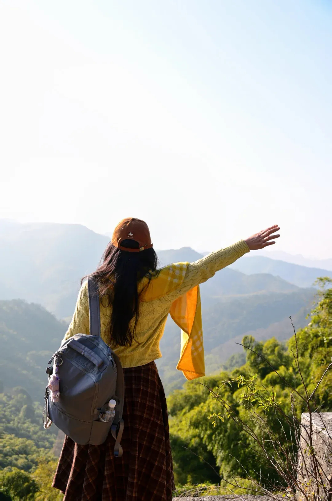 路线最后一程最是考验耐力:从里坑门向上爬升200米抵达东明寺,行到开阔地,让碧水、群山作为背景幕布,拍出超有氛围感的春日运动感大片。